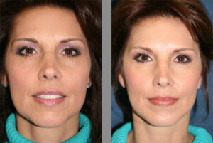 - Mély nasolabiális redők (nevetőráncok): az orr és a szájzug között húzódó mély ráncok, amelyek fáradt, szomorú arckifejezést eredményeznek.